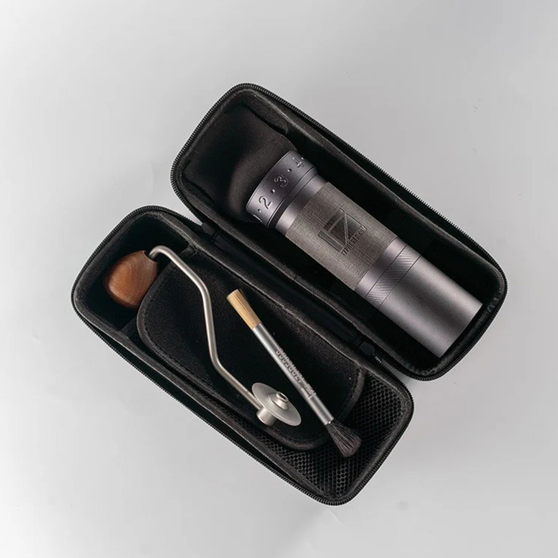 The grinder features an external adjustment system with 90 clicks per rotation and approximately 22 microns of precision per click, giving you ultra-fine control to dial in the perfect grind size for your preferred brewing method. For those who love brewing on the move, the ZP6’s foldable handle is a game changer. Fold it down and the grinder slides neatly into its cylindrical travel case, making it ideal for work, travel, or outdoor brewing. Its curved wooden grip completes the experience, giving you better control and a comfortable, stable hold while grinding.